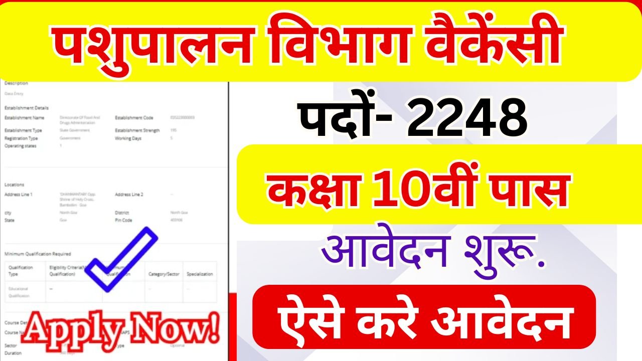 Pashupalan Vibhag Vacancy 2025: पशुपालन विभाग में 10वीं पास के लिए निकली भर्ती, आवेदन शुरू •
