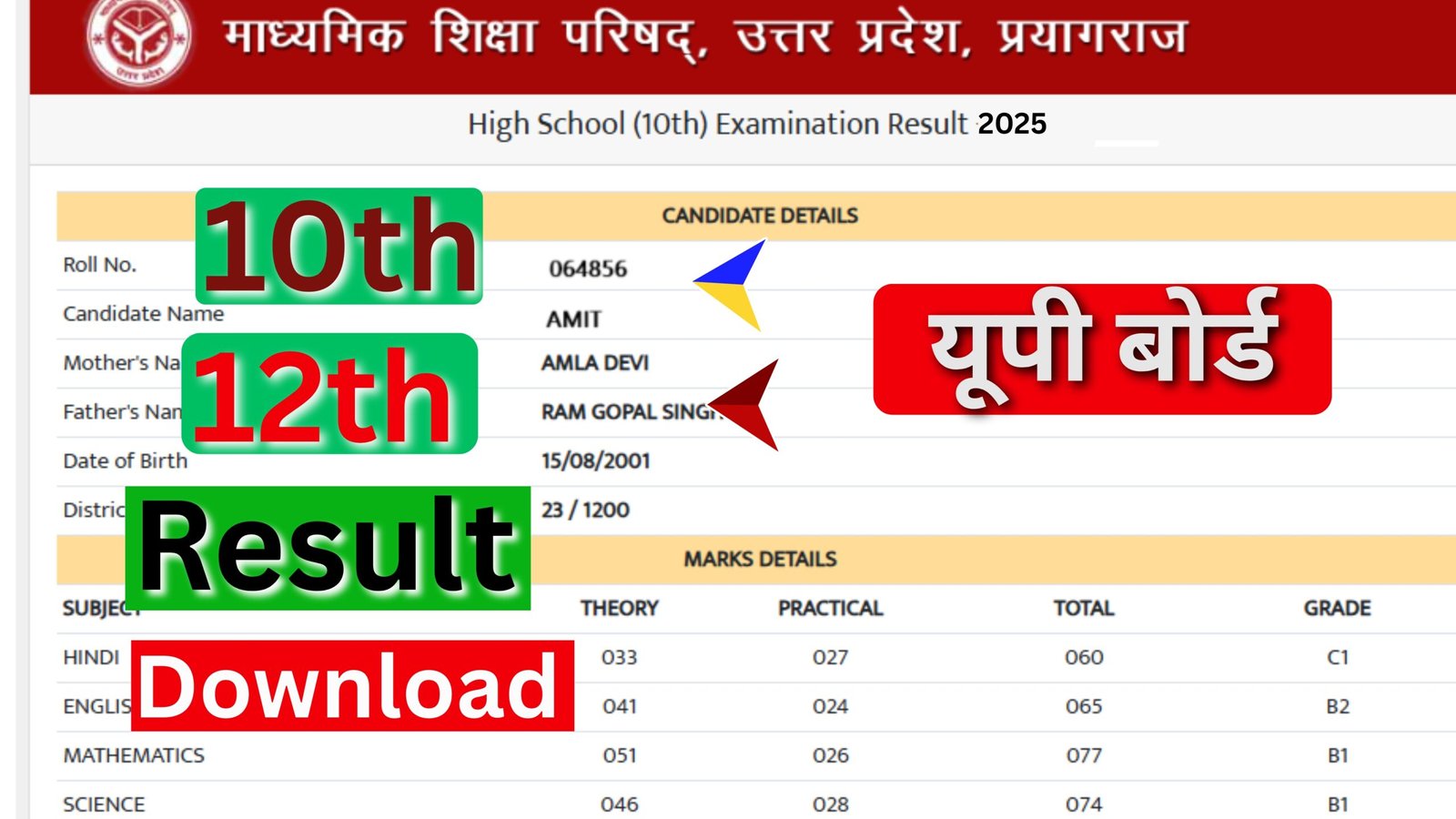 यूपी बोर्ड रिजल्ट लाइव अपडेट्स आज दोपहर12:30 बजे यहां देखें। Check Result UP Board (यूपी बोर्ड रिजल्ट 2025) Result चेक करें।