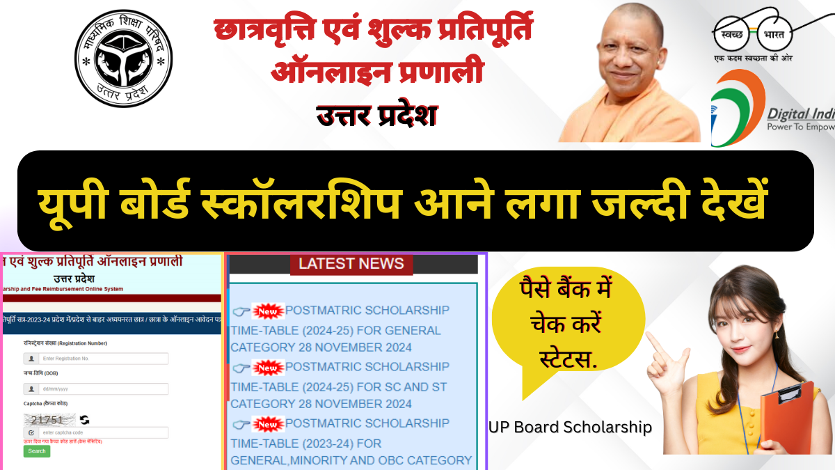 UP Scholarship Status class 12th : यूपी स्कॉलरशिप स्टेटस चेक करें, (पोस्ट मैट्रिक)