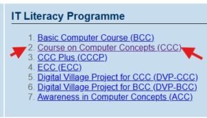Course on Computer Concepts (CCC) एक बेसिक कंप्यूटर कोर्स है जिसे NIELIT (पूर्व में DOEACC) आयोजित करता है। यह कोर्स खासतौर पर उन छात्रों और सरकारी नौकरी के उम्मीदवारों के लिए जरूरी है, जिन्हें कंप्यूटर की बेसिक जानकारी की आवश्यकता होती है।
