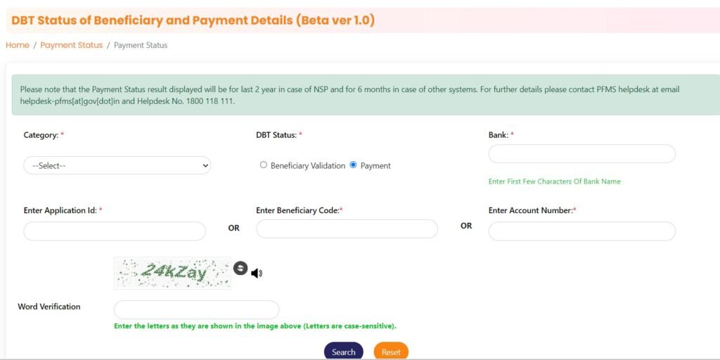 DBT Payment Status Check Without OTP