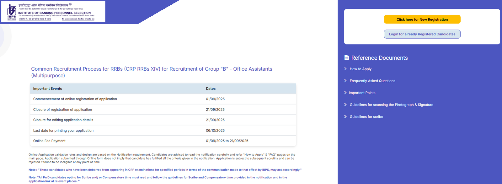 • क्लिक करने के बाद आपके सामने एक नया पेज खुलकर आ जाएगा उसे पेज में आपको Apply Online for Recruitment of Office Assistant (Multipurpose) under CRP-RRBS-XIV के ऑप्शन पर क्लिक करे।