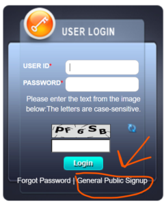 • आपको अब होम पेज पर General Public Sign Up के Option पर Click करना है!