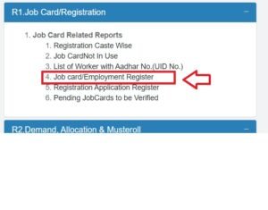 - पहला ऑप्शन पर R1. Job Card/ Registration के अंतर्गत Job Card/Employment Register ऑप्शन पर क्लिक करना है।