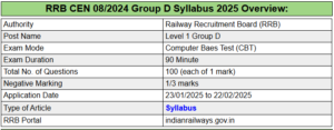 RRB Group D Syllabus 2025 : Overview