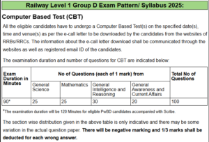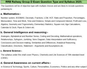 रेलवे ग्रुप D परीक्षा का प्रारूप : RRB Group D Syllabus 2025